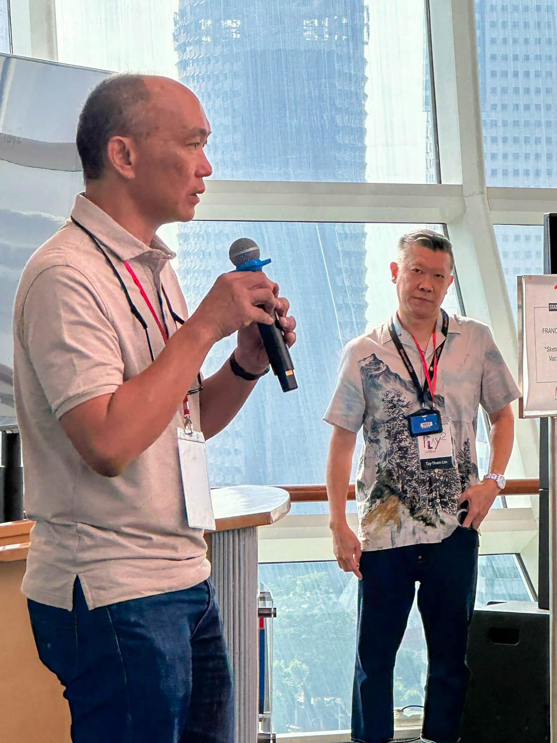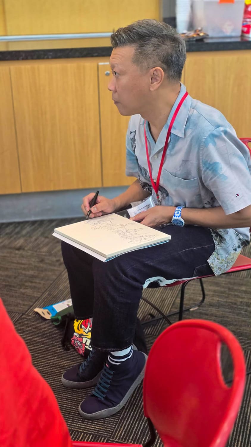 Thain Lin, the chair for the day, juggled administrative duties with his passion for sketching. Despite his busy schedule for the day, he couldn't resist the urge to capture a few moments on paper, proving that sketching is truly a part of who he is.