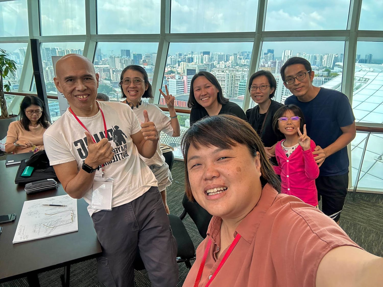A successful workshop concluded with a group photo featuring the instructors, assistants, and our partner from NLB, Yu Xiang (far left). This photo was taken during the afternoon session. James Lim (fourth from the right) was the other instructor for the day. The workshop was a resounding success, receiving positive feedback from all participants.