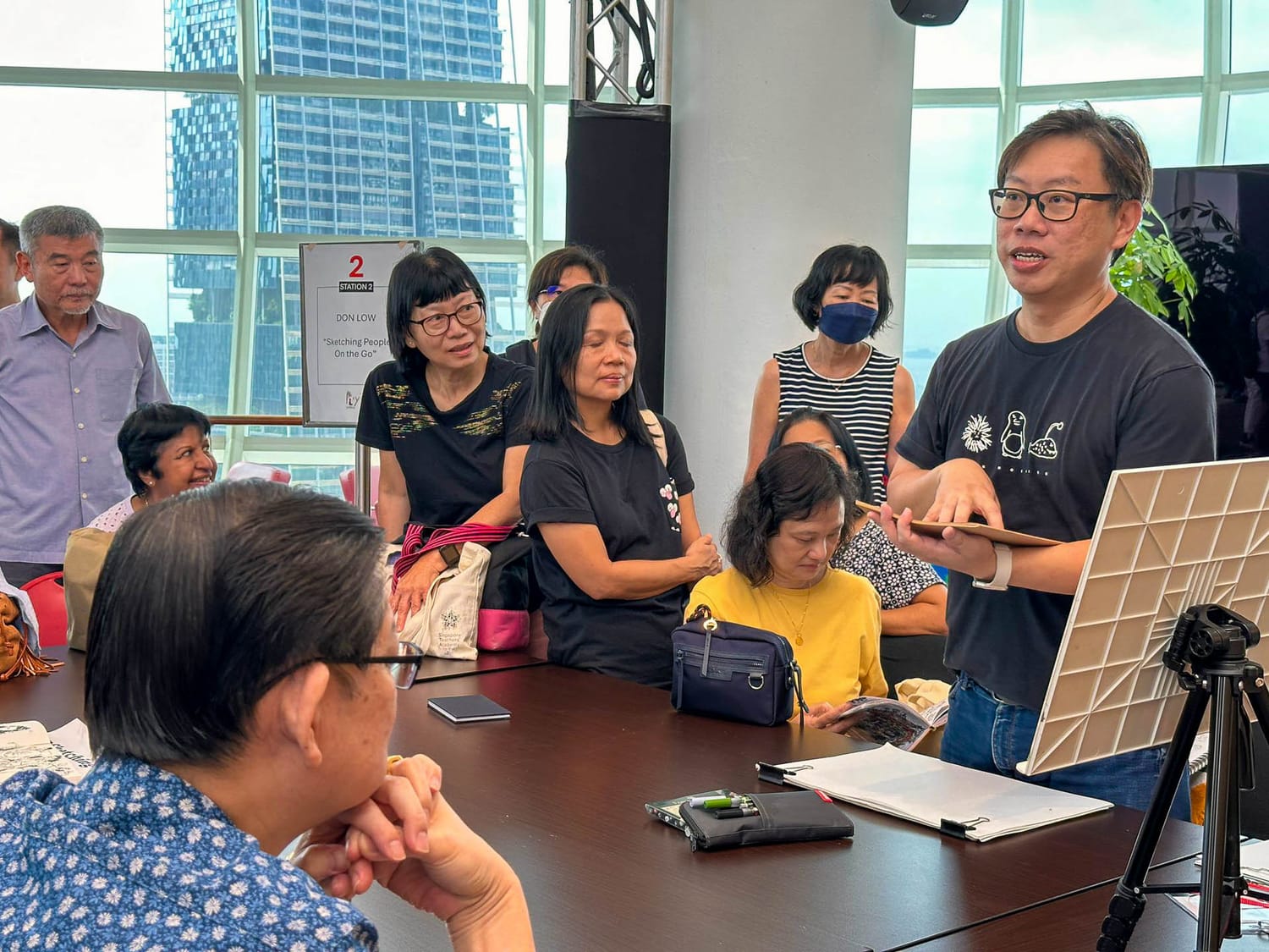 Don Low shared valuable sketching tips during the workshop. The photo captures him in action, demonstrating his techniques.