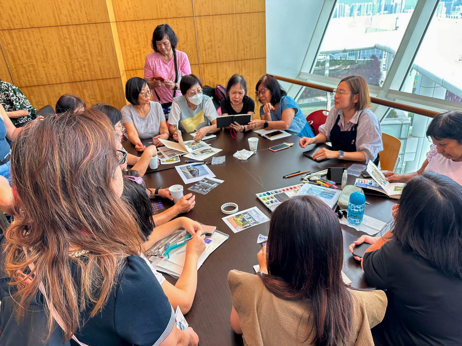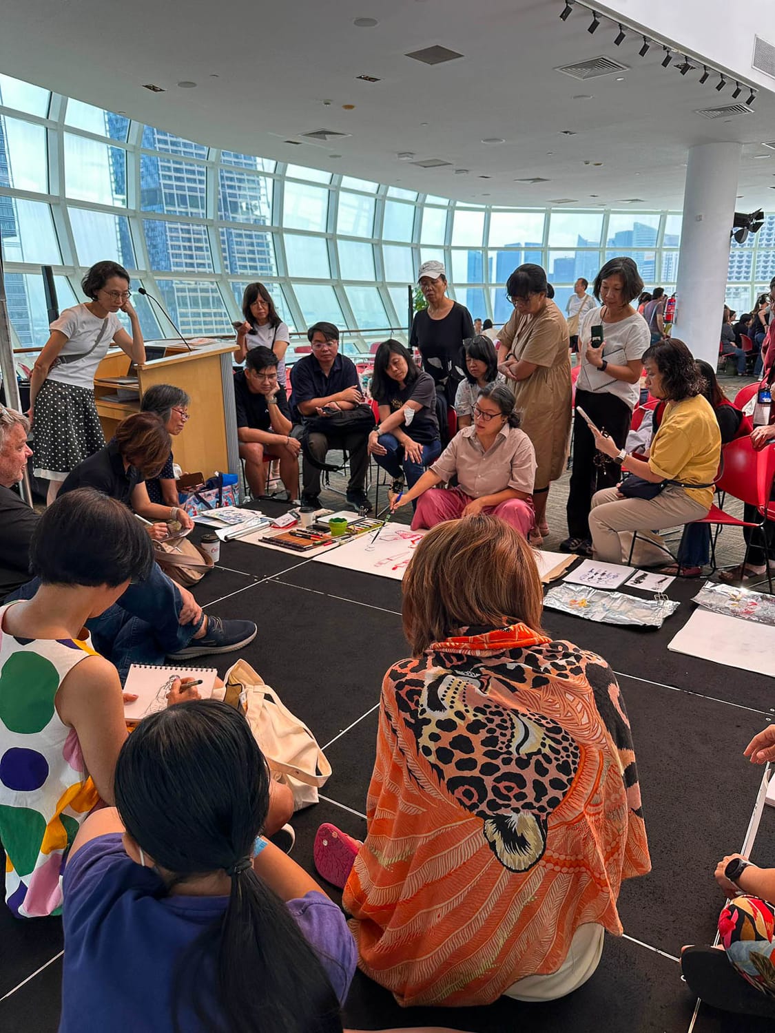 Alice Lim is renowned for her shopfront sketches. In this photo, you can see her sharing her knowledge with others.